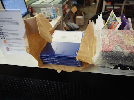 Printed Matterでは契約書にサインをして、あっという間に納品完了。契約書といっても内容は最低限で、掛け率や、送料をどちらがもつか、最初に何冊納品したかを記入するだけ。持ち込みをした時も思ったけれど、Printed Matterはどのステップもとてもスムーズ。受け入れ体制が整っているので話も早い。受付の彼女にお礼を言って、一昨日訪ねた