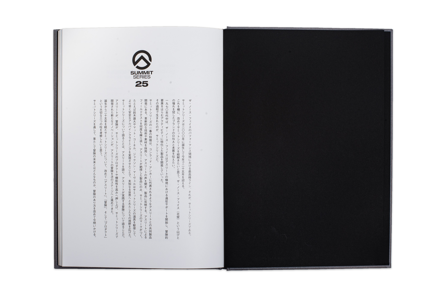アウトドアブランド「THE NORTH FACE」の最高峰ライン「SUMMIT SERIES」の25周年を記念した公式ブランディングブック。